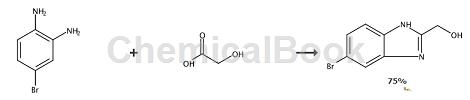 将4n hcl(8.55ml,51.3mmol),(2-氨基-4-溴基)胺(8g,42.8mmol)和羟基(4.88g,64.2mmol)在水(3ml)中的混合物加热 微波反应器在120℃下保持1小时。 加入naoh(6n,2ml)。 固体沉淀出来。 过滤固体,用洗涤,得到标题化合物(7.3g,32.2mmol,75%收率)。(5-溴-1h-并咪唑-2-基)甲醇,收率(7.3g,32.2mmol,75%)。