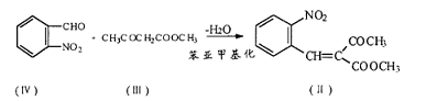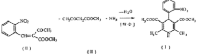 一种制备硝地平的方法是:在同一反应器内,首先使邻硝基甲醛(iv)与乙酰甲酯(iii)在 吡啶羧酸盐的催化作用下生成亚甲基化物(ii):