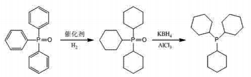 ph3po是有机合成的重要原料,可用来合成有机膦配体如三环己基膦,三环己基膦中的环己基具有较好的电子效应和空间位阻效应,使其配位效果较好,是偶联反应中重要的催化剂配体之一。以三基氧膦为起始原料,在催化剂ru/c的作用下催化加氢,合成三环己基氧膦,然后经kbh4-alcl3还原合成三环己基膦。反应过程如下。